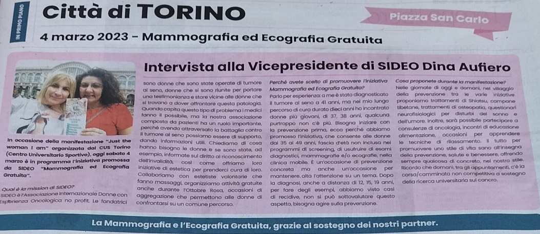 Sideo Solidarietà Internazionale Donne con Esperienza Oncologica
